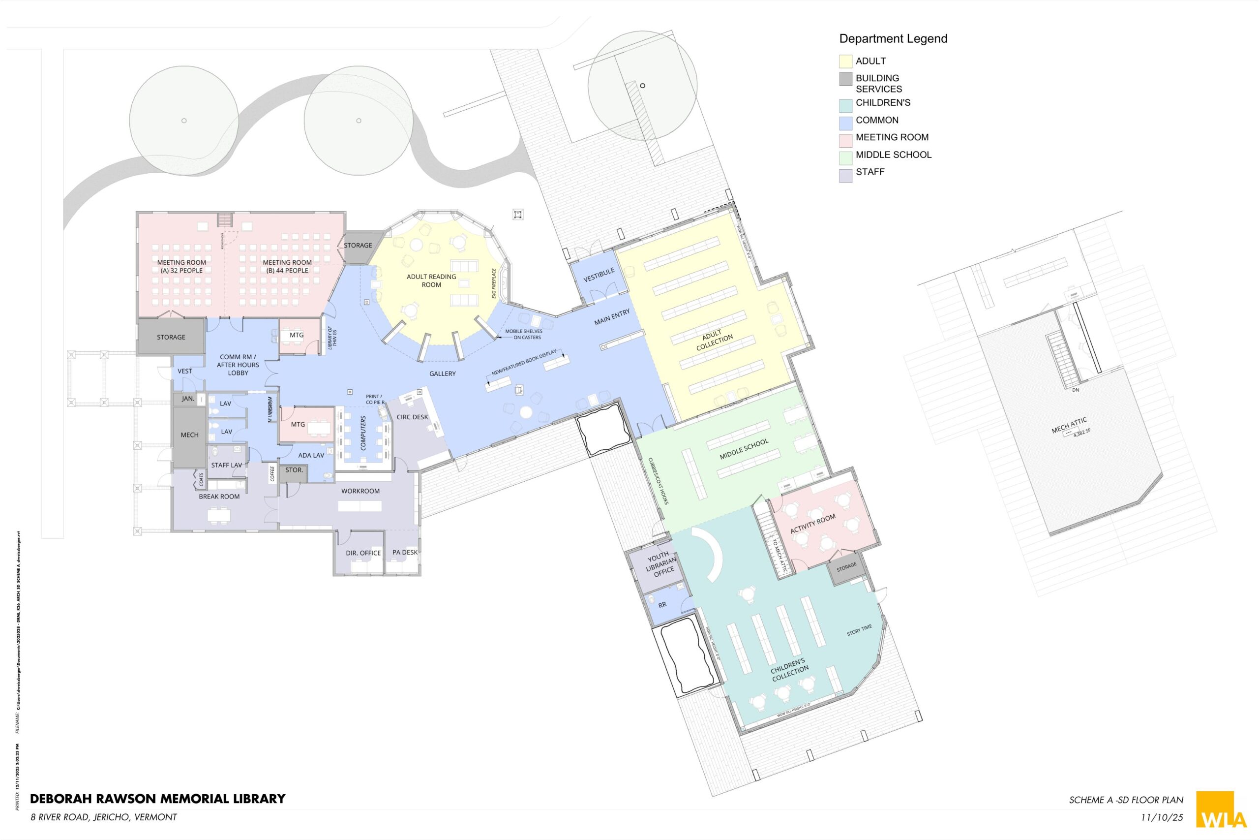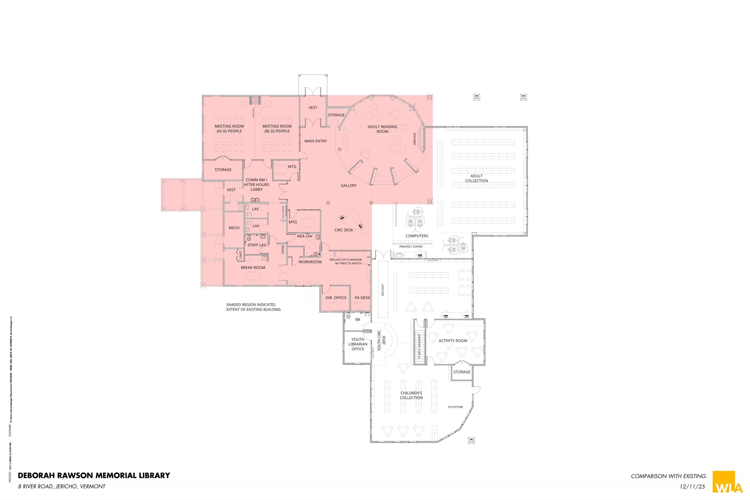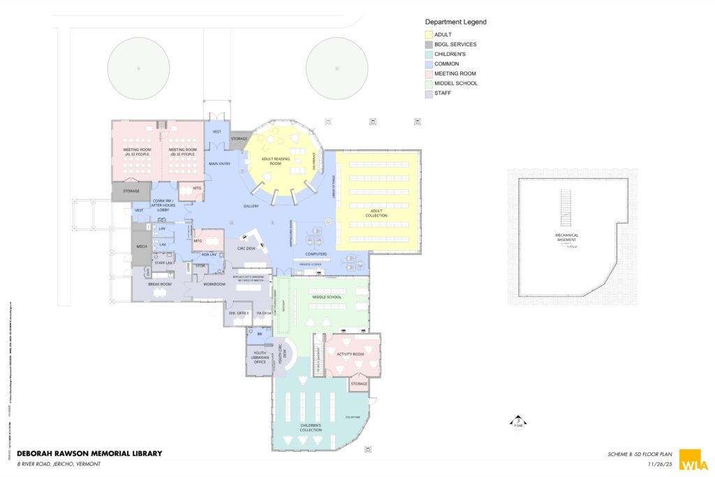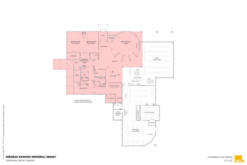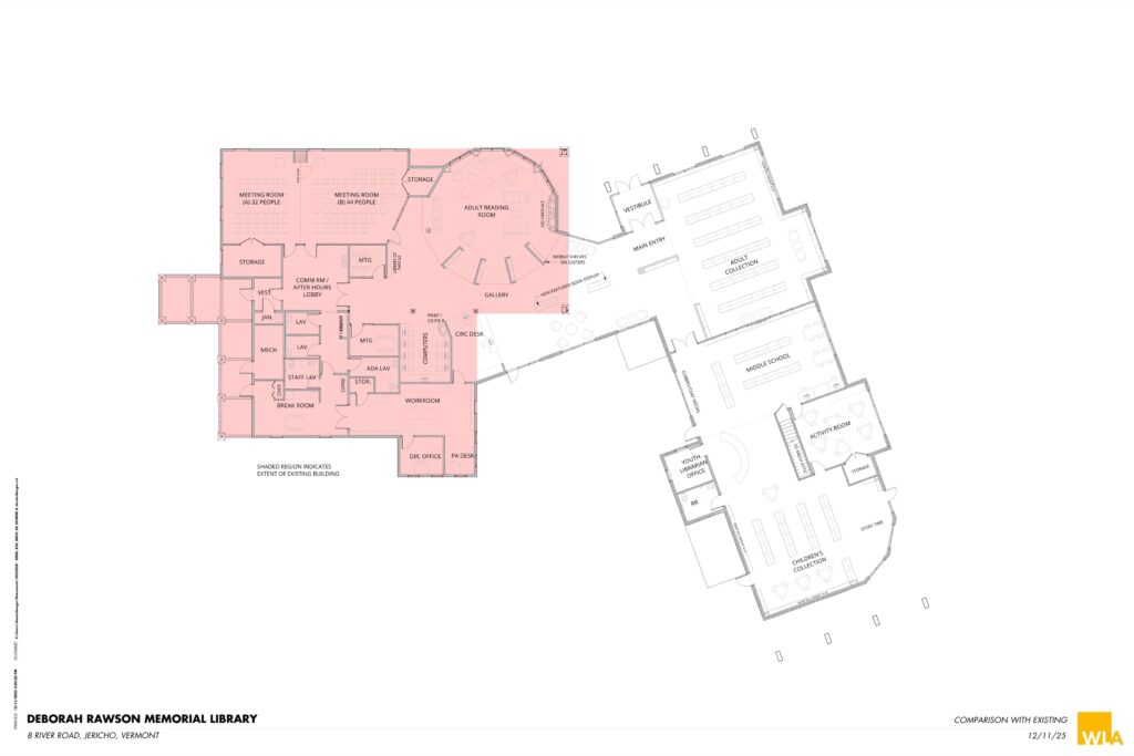 January 19, 2026: We have tentative plans to share! Below you will find images of the two potential expansion plans for our library; the potential interior design as well as the overlay of the current building so you can get oriented. Click on the images to make them larger.